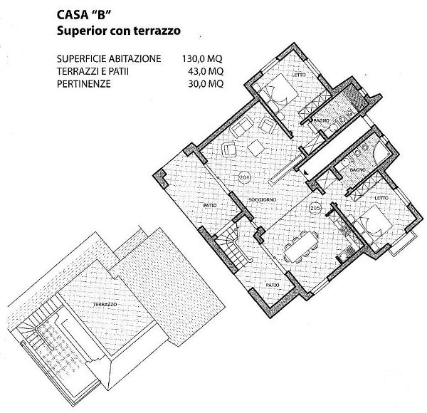 L’alloggio consta di due grandi stanze da letto, due bagni, un grande soggiorno con angolo cottura dotato di tutti i comforts e un grande soggiorno lungo il quale si aprono due grandi terrazzi arredati.